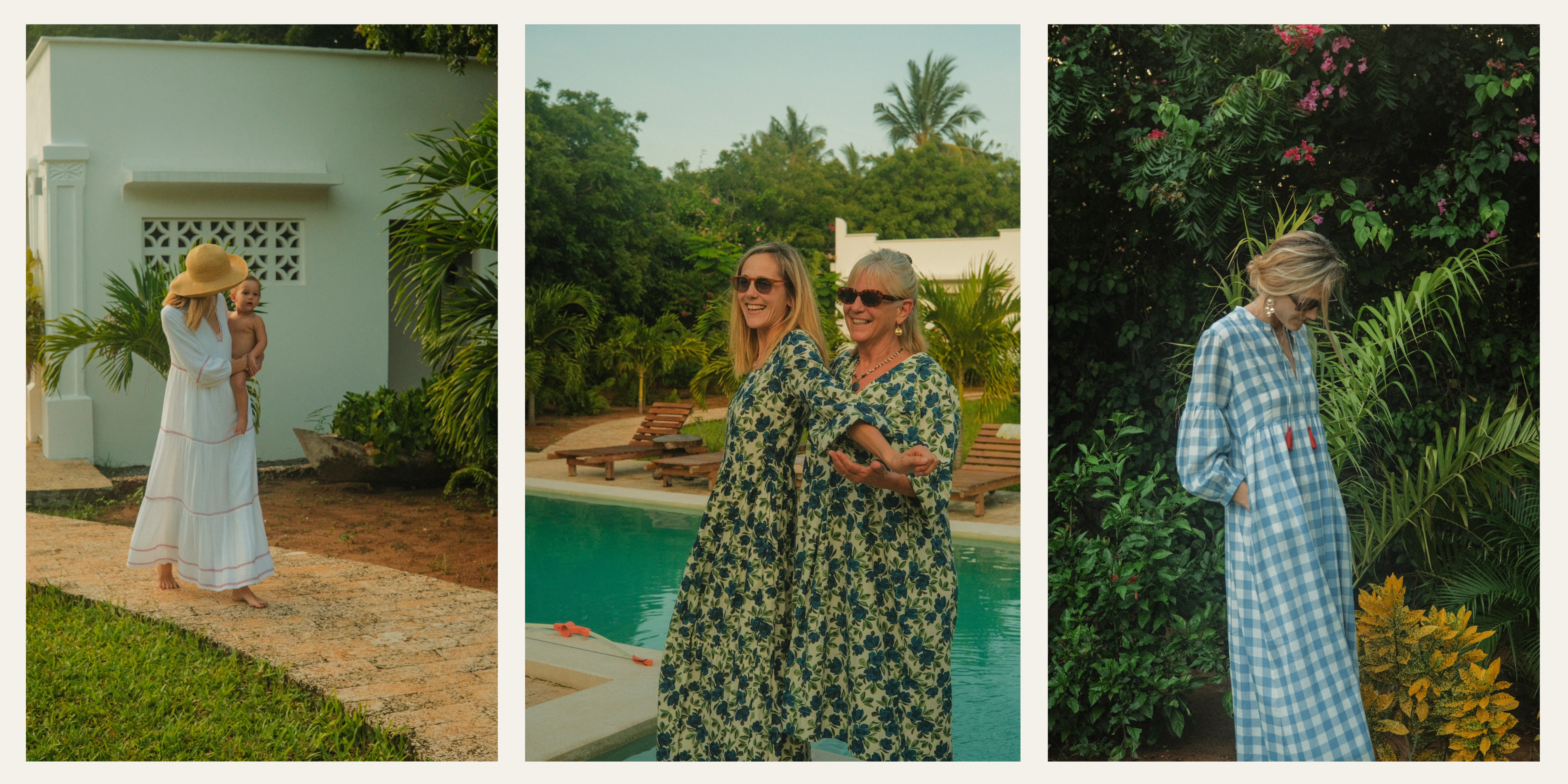 I actually think with the right accessories any of my designs can be ‘jewelled-up’ or ‘trainer-ed down’, and that makes me happy that I can say that. It feels like I’ve done my job. What I can tell you is that on my recent trip to Kenya with the family, my daughter Lily and I both lived in our Elsie dresses. In printed cotton poplin, it is crisp and cool for daytime and the v neck detail has a lovely smart look for the evening (again, with the right jewels!)