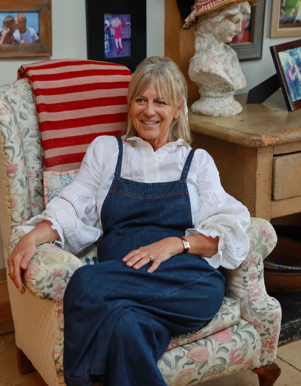 There is a fluidity between Kate’s home and her design process. “I’m always surprised by how much of my design inspiration actually comes without me leaving the house.” Looking around, I can see why. We chat about the inspiration behind the printed needlecord in the latest Autumn Winter collection, which came from a vintage French quilt. It’s not just confined to the house, inspiration comes from stepping outside the doors of Church Farm too. “Walking through the garden this morning, I passed the Cosmos I have in pots and I’m now obsessing over that beautiful deep carmine colour with a pink trim for Autumn Winter 24. I can picture it in needlecord - I’m excited already.”