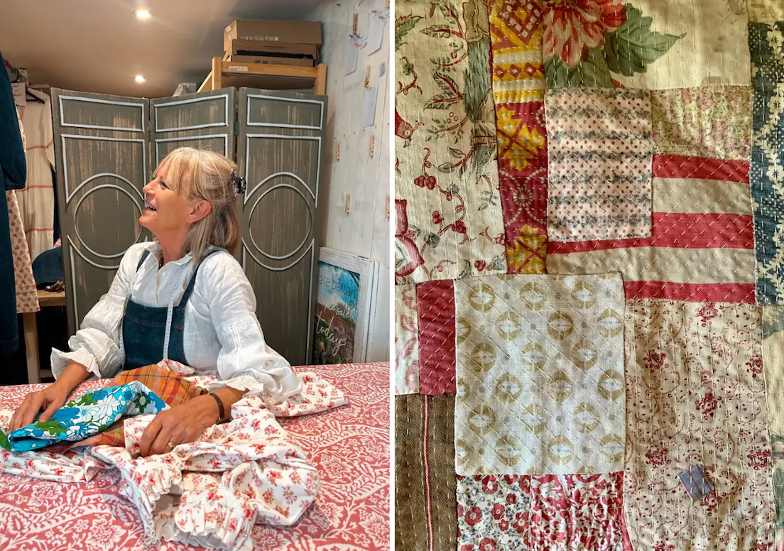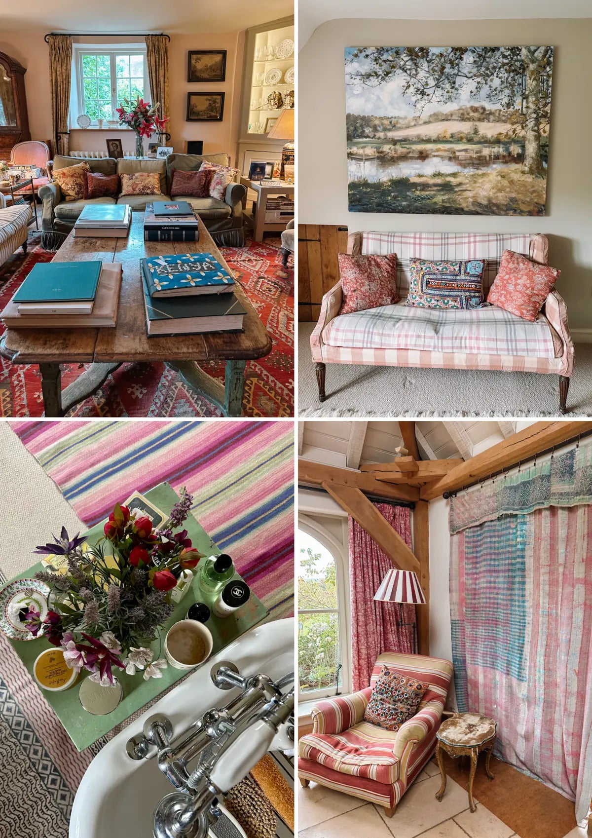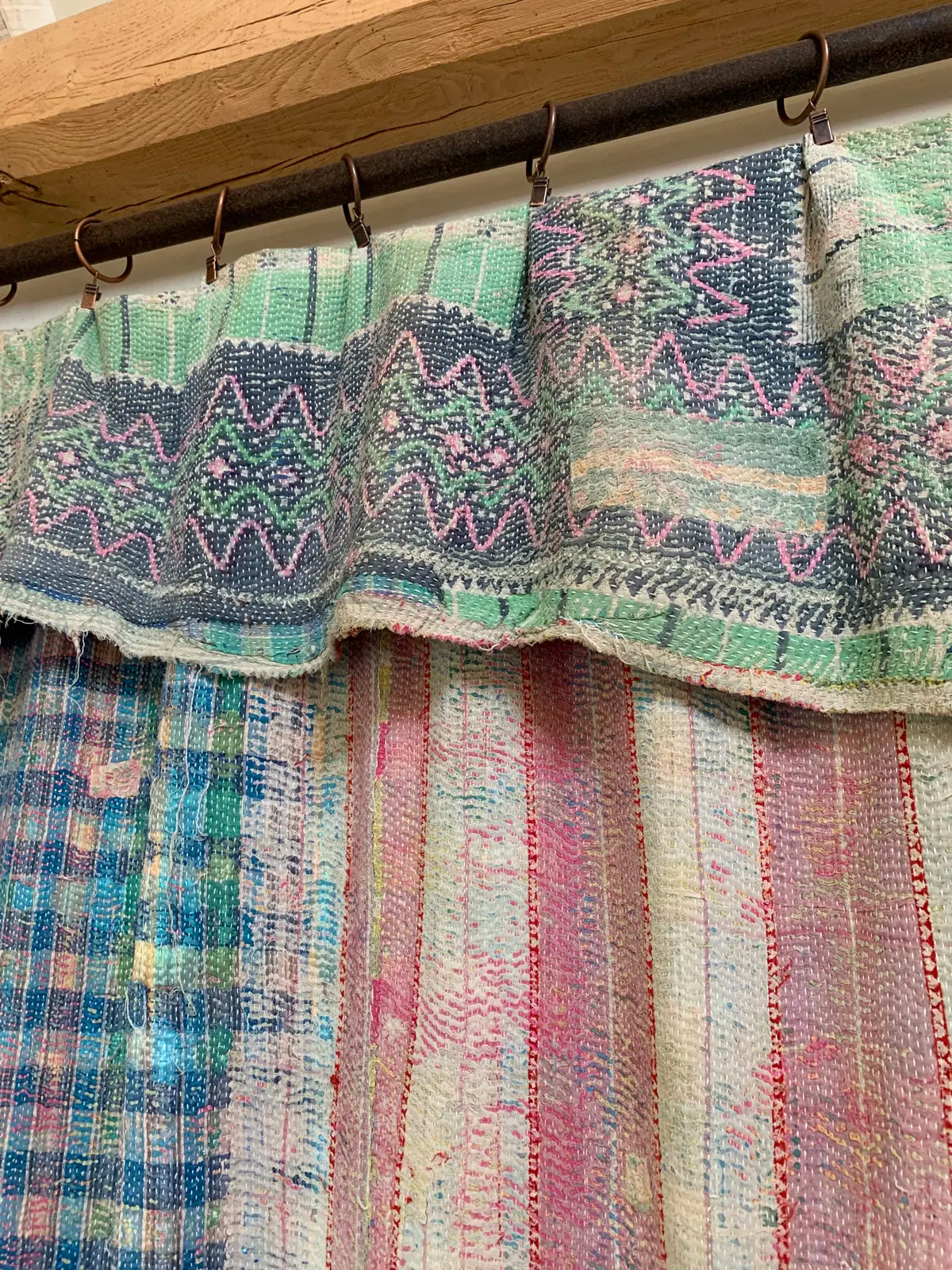 “My absolute favourite is my cushion made from a treasured Gujarati wedding dress. I wanted to see it every day, so now that it sits here in my kitchen, I get to do just that.” Not much is being used as its original purpose had intended. Kate has passed her ‘quilts as curtains’ tip to many a visitor to Church Farm - using quilts attached to cafe clips to create a cost effective, warm, yet flexible alternative to curtains.“I take them down in the summer to let more light in, and I change them around for fun every now and again when I feel the urge - quilts that are on the backs of sofas exchange places with the ones in the windows and vice versa. I love having a reshuffle!”