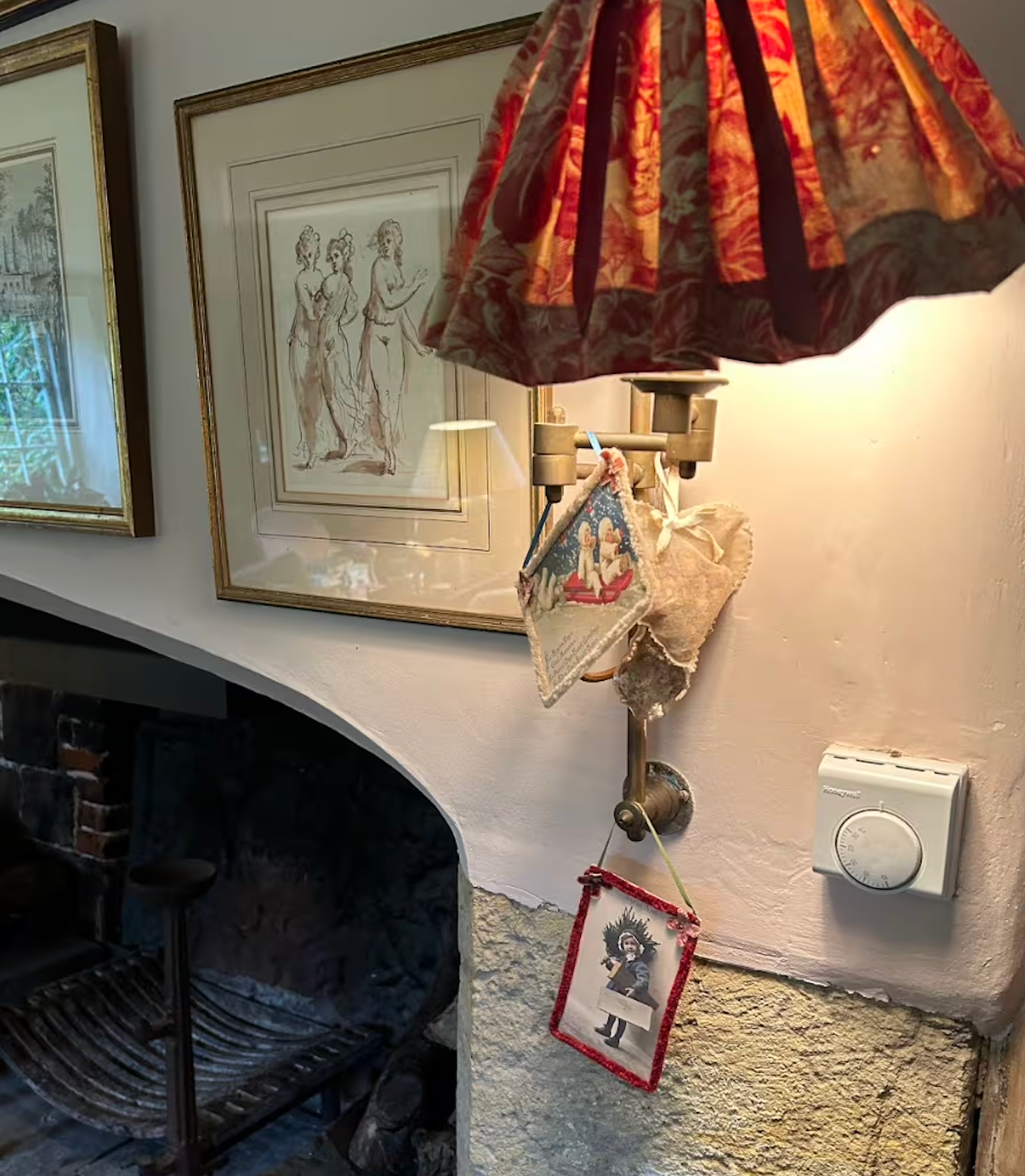 This repurposing and reusing continues as we stroll through the house. Not much looks as though it has been bought new. Every element has a story - either passed down, made by a friend, painted by the children, a birthday gift - all wonderful layers to Kate’s story. Pointing to the seemingly cluttered ledge above the fire, Kate appears to read my mind “I know it might look like chaos up there but everything on that mantel is meant to be there.” And, it’s obviously true as she proceeds to tell the tales of the antique china from her grandmother, Niall’s Glastonbury hat, the stuffed, clothed fox (a teddy bear, not the real deal, thankfully..).
