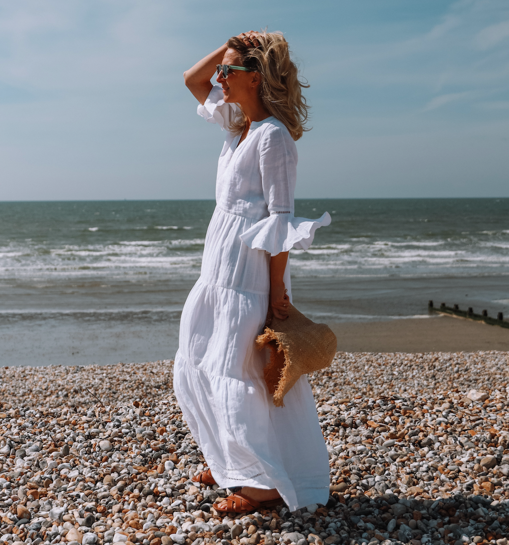 "Our honeymoon plans are flexible, but we're possibly looking at doing a road trip in our camper van, maybe to northern Spain with our daughter. Attire wise, my bag will be firmly packed with the following (wherever we end up going!) - The Rosie dress in white, Sophia dress in Botanica, The White Linen Vest and the Palazzos in white."