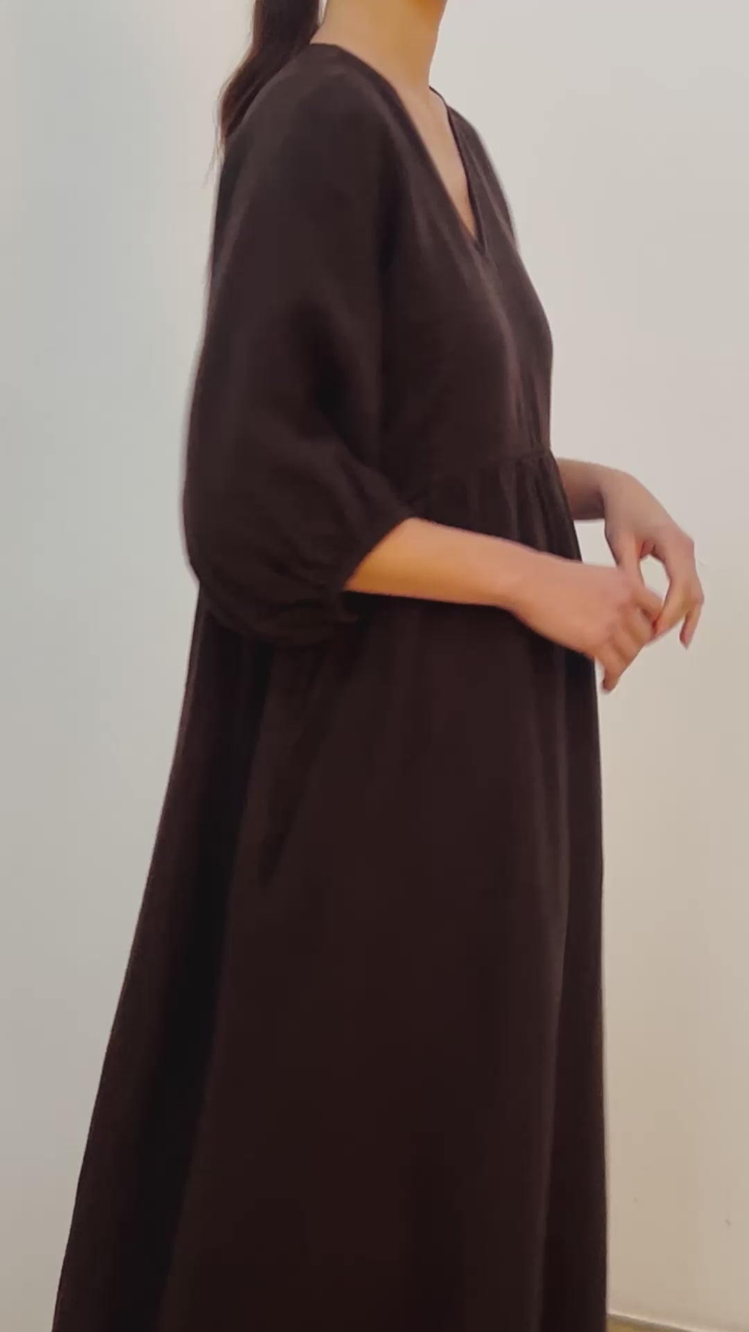 The Betsy dress is a timeless piece, designed to be worn on repeat. Crafted in our stonewashed linen with a relaxed fit, floaty elbow length sleeves, a soft V neck and hidden side pockets (of course)! Accessorised for day wear or nights out, a versatile piece that effortlessly moves from morning coffee to dinner in town. Also available in Denim.