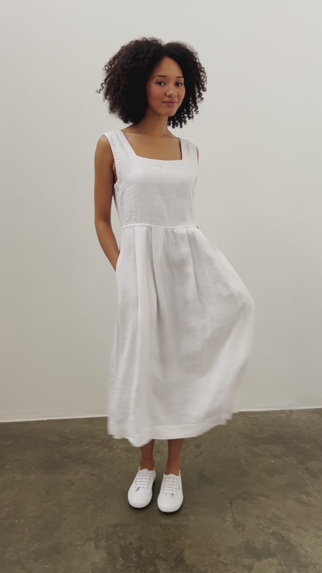 Simple is often best. Say a warm hello to the Coco Dress, our stunning sleeveless, square neck summer dress. Crafted from our cooling stonewashed linen - this is the one you'll reach for when the temperature rises. Slightly fitted but still supremely flattering.