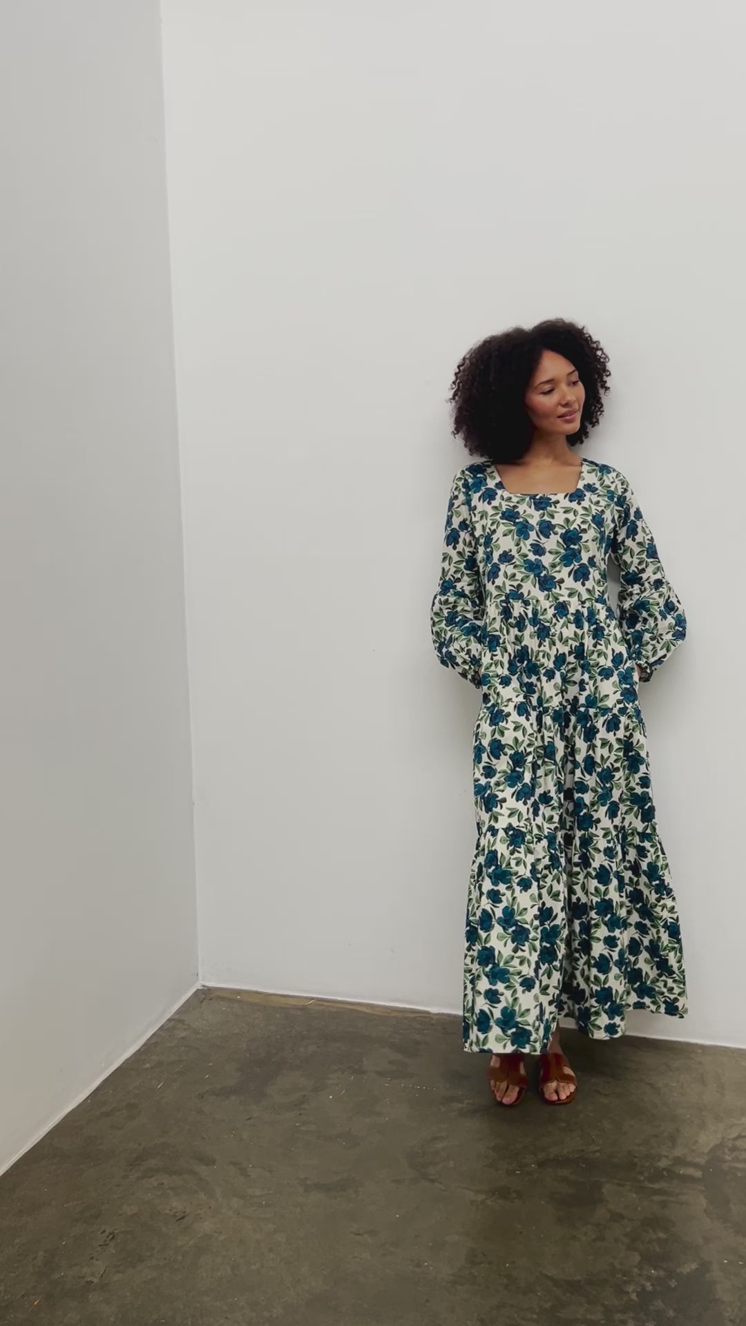 The Delilah Dress steals the show every time and is perfect if you're looking for something that little bit special. The square neckline, long maxi length and tiered full skirt delivers a truly stand out profile. The fitted top sleeve leads into a generous bell sleeve with gently elasticated cuffs and of course she has pockets!