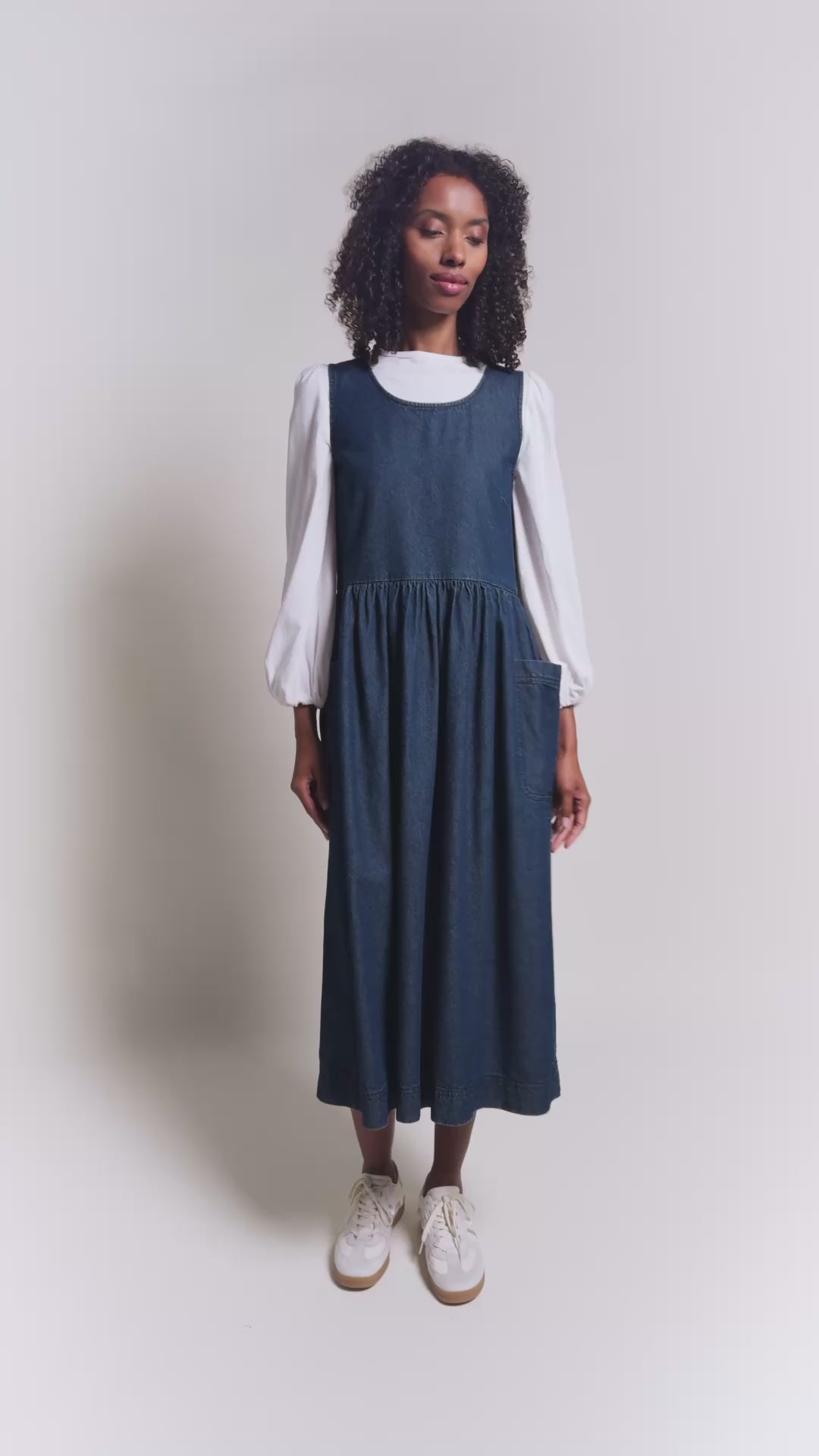 Part of our seasonless denim collection. The Classic Pinafore has a gently gathered high waist, large utilitarian patch pockets and a relaxed skirt, this style is a brilliant addition to your year-round uniform.