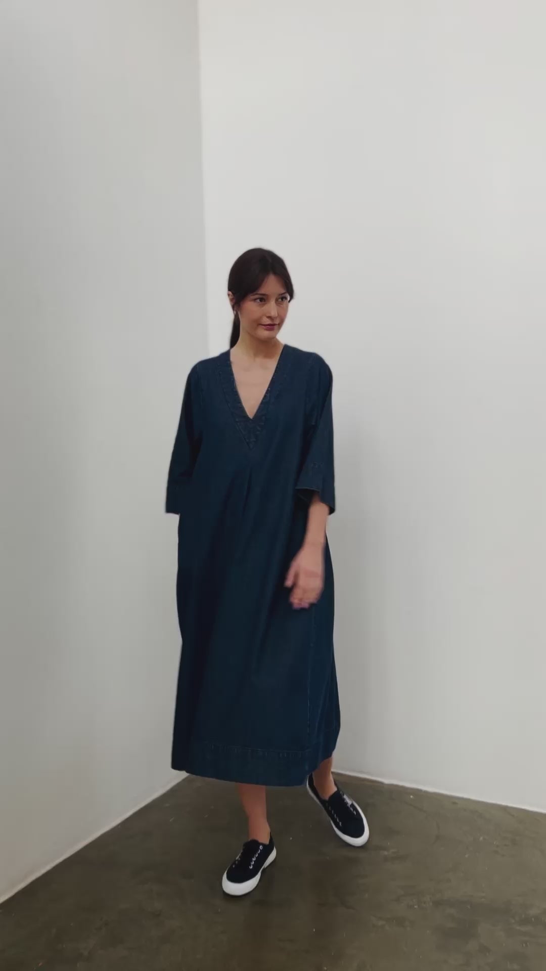 With an air of elegance, but with comfort written all over it. Wide, easy sleeves, relaxed hang and a cooling deep V neck front.