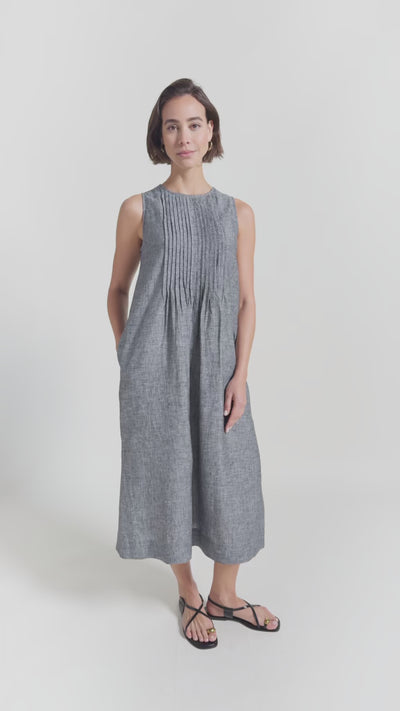 With its super-comfortable fit, our flattering and elegant pintuck sleeveless dress is set to be the coolest addition to your wardrobe for those hot summer days we’re all dreaming of. Now in chambray linen.