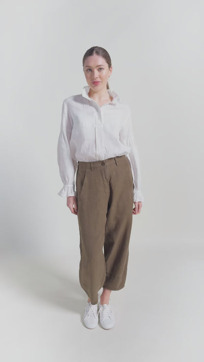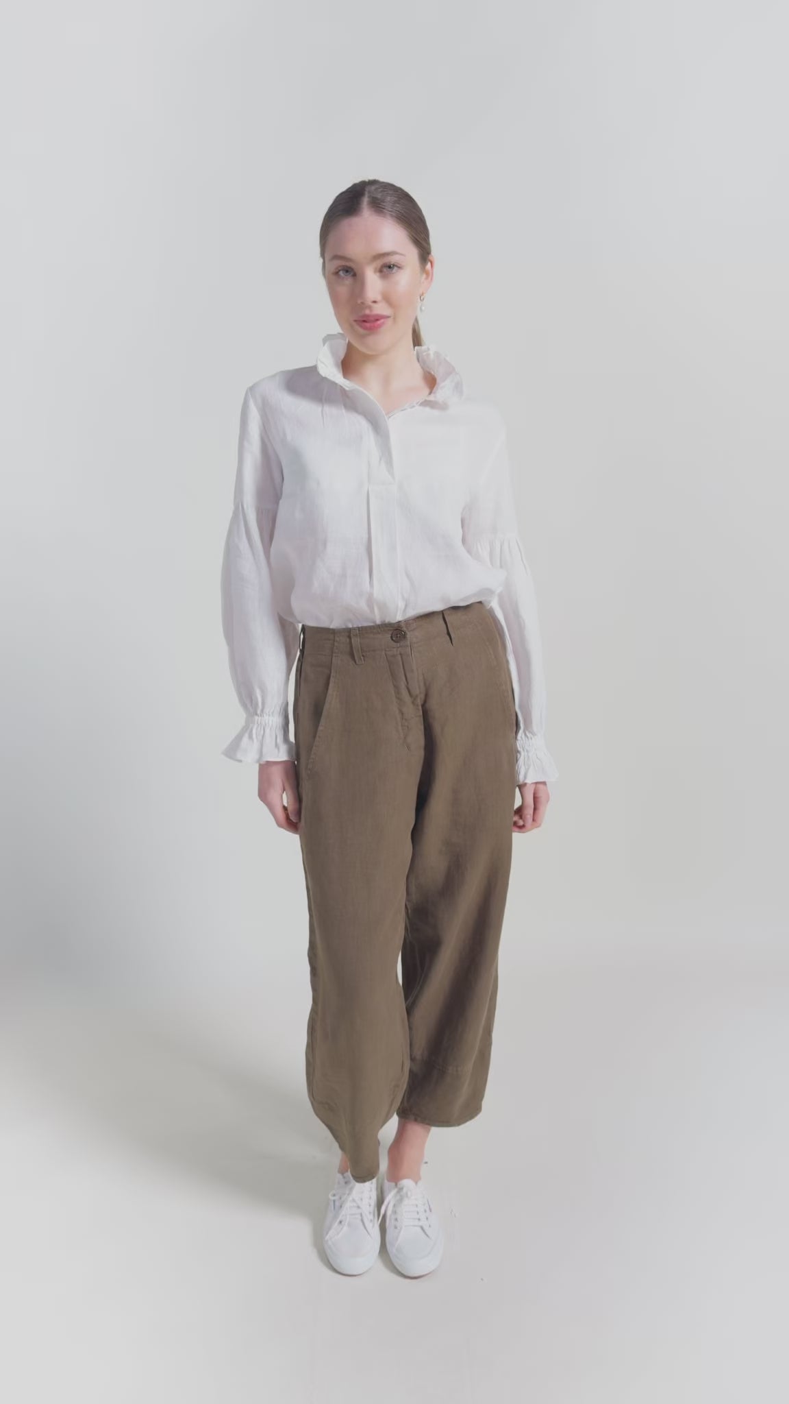 The collection simply wouldn’t be complete without our Edwardian Shirt in lightweight linen. With elegant ruffle detailing at the collar and cuffs, it’s the piece that instantly elevates a look.