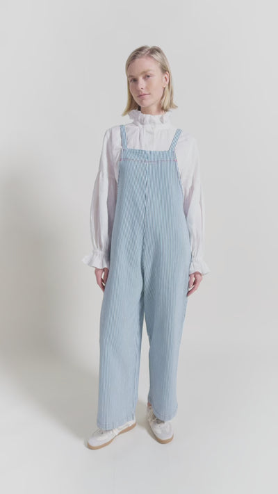 Our new striped dungarees offer the same easy fit you know and love, reimagined in a lighter stretch denim for spring–summer.